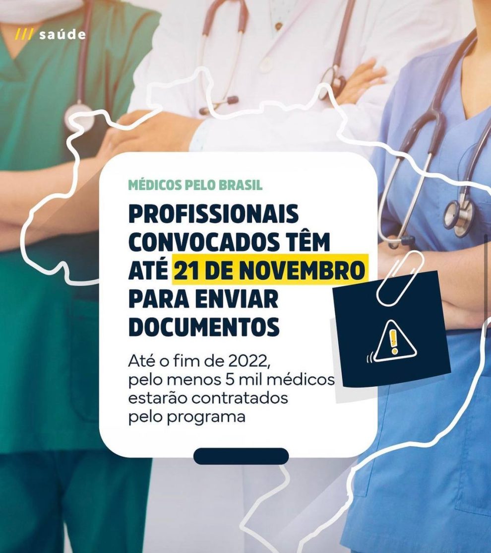 Até o fim de 2022, pelo menos 5 mil médicos estarão contratados pelo Programa Médicos pelo Brasil.
