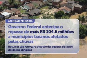 Governo Federal antecipa o repasse de mais de 104,6 milhões a municípios baianos afetados pela chuva