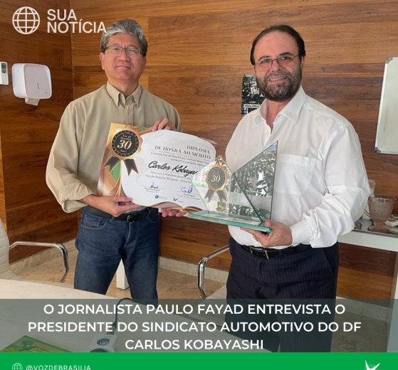 O jornalista Paulo Fayad entrevista o Presidente do Sindicato Automotivo do DF Carlos Kobayashi