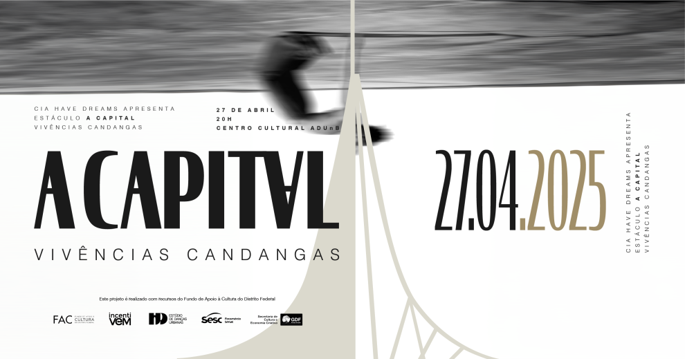 Neste domingo (27), o Teatro da ADUnB recebe o emocionante espetáculo “A Capital”, da Cia. Have Dreams. A montagem é baseada na coreografia premiada no Hip Hop District em 2023 e retrata, por meio da dança urbana, a vivência dos candangos que construíram Brasília.