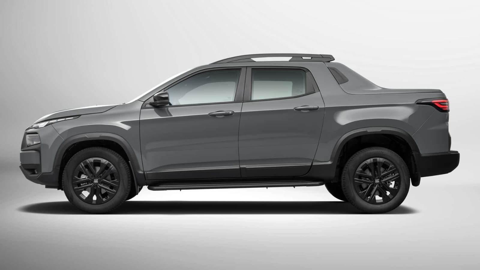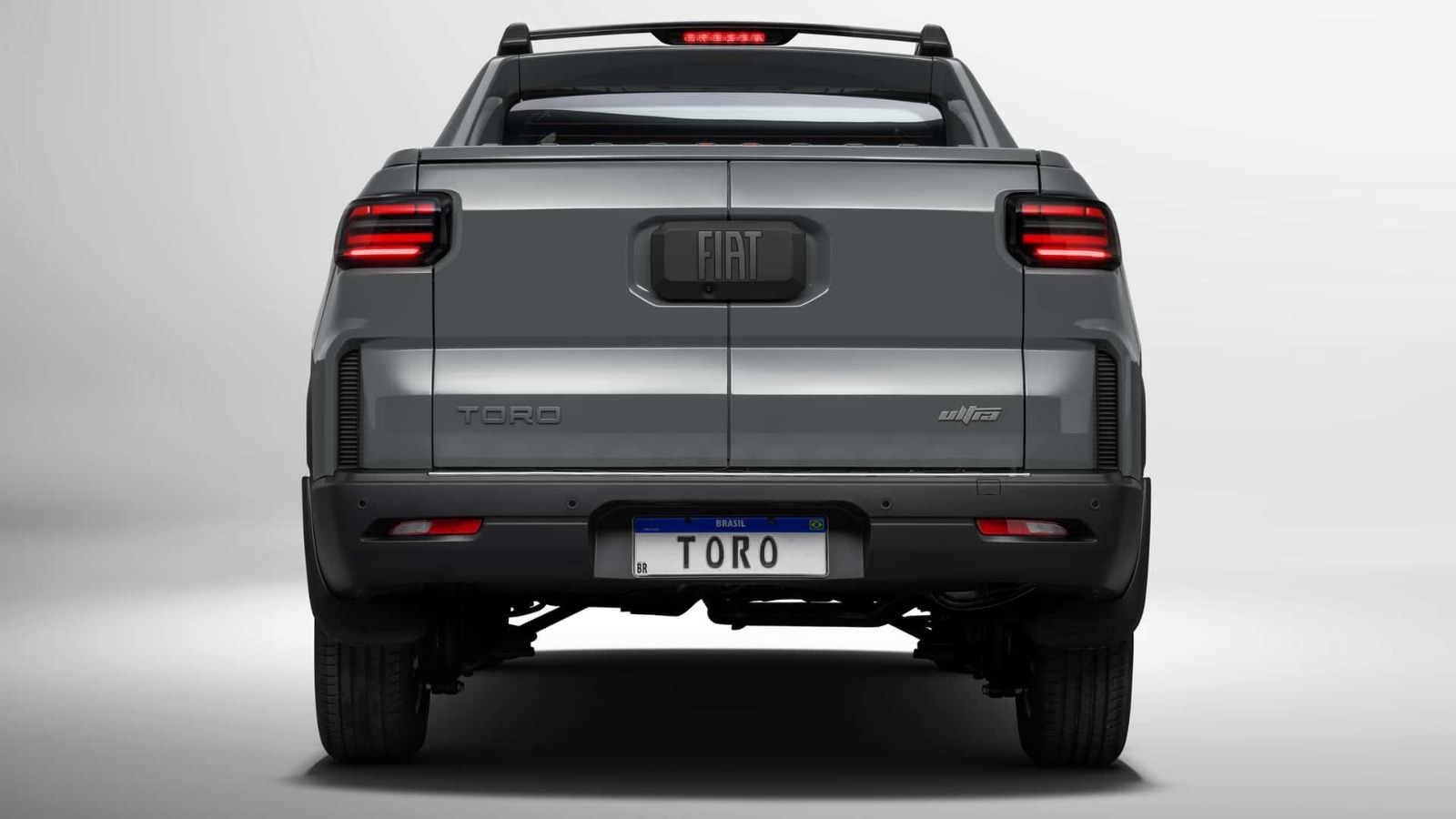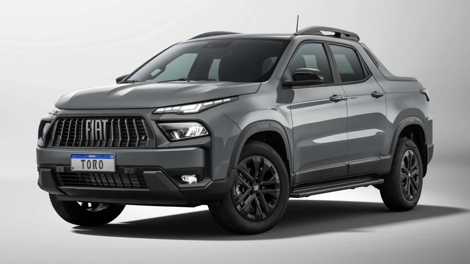 Na dianteira, a Toro adota a nova identidade da marca, alinhada com Pulse, Fastback, Argo e Cronos. Os destaques ficam para as luzes diurnas (DRLs) em LEDs “pixelizados”, a grade trapezoidal com filetes inclinados e o logo Fiat em evidência. Os faróis full-LED seguem posicionados mais abaixo, agora ladeados por entradas de ar que reforçam a esportividade.
