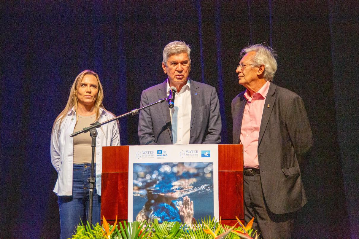 A solenidade contou ainda com a presença do diretor executivo da Global Network of Water Museums, Eriberto Eulisse, a participação virtual do diretor da Divisão de Ciências da Água da UNESCO, Abou Amani, e um vídeo de saudação do presidente da WAMU+NET, Eddy Moors, que destacaram o papel do Brasil na promoção da cultura da água e na construção de soluções globais para os desafios climáticos. Também compuseram o dispositivo, os diretores da Adasa Vinícius Benevides, Félix Palazzo e Apolinário Rebelo, além do ouvidor da Agência, Fernando Martins.