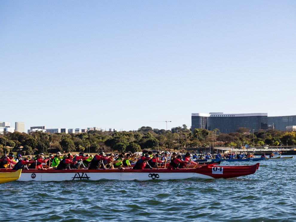 Já na disputa da Canoa Havaiana, o destaque vai para a equipe Ava Canônicos do Paranoá, capitaneada por Kenny Sousa Alves, que cruzou a linha de chegada com excelente desempenho na categoria Va’a Race 17K. “Ganhar em Brasília é sempre especial, porque estamos no nosso quintal. Participamos desse evento há sete anos atrás e agora ele volta ao DF, o que é muito importante para fortalecer os eventos de canoa, já que ainda somos um pouco carentes nesse circuito nacional. É muito bom conquistar essa vitória em casa, junto com meus alunos e com a minha escola, que é uma das mais antigas de Brasília. O evento tem um peso enorme — é um circuito consolidado no cenário nacional — e é incrível ver essa união com o pessoal da natação e de todo esse movimento aquático no Lago Paranoá.”
